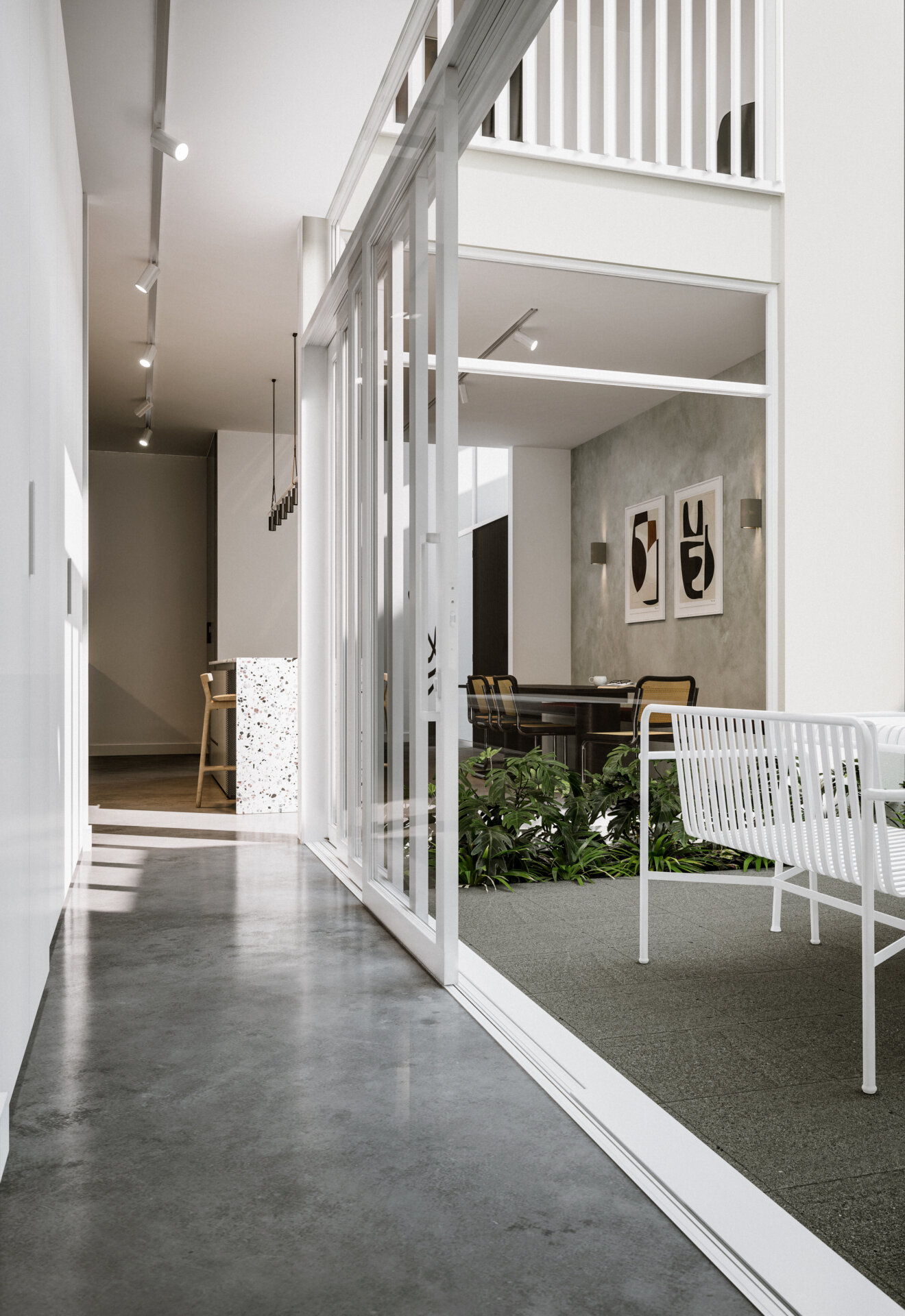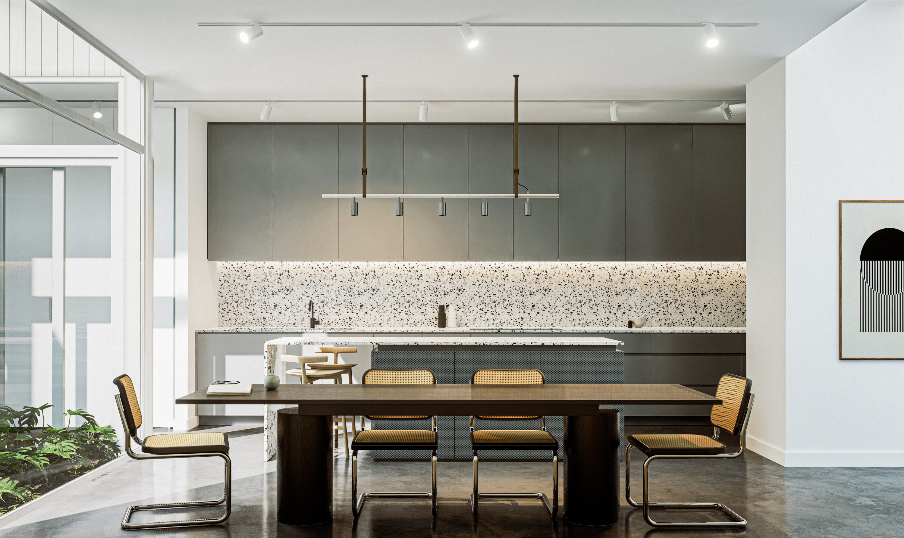 Treno offers a blend of urban and suburban lifestyles. This mixed-use development has both apartments and townhouses, balancing modern conveniences with the charm of Mile End. A highlight of the design by Studio Nine Architects is the communal rooftop terrace with city views.